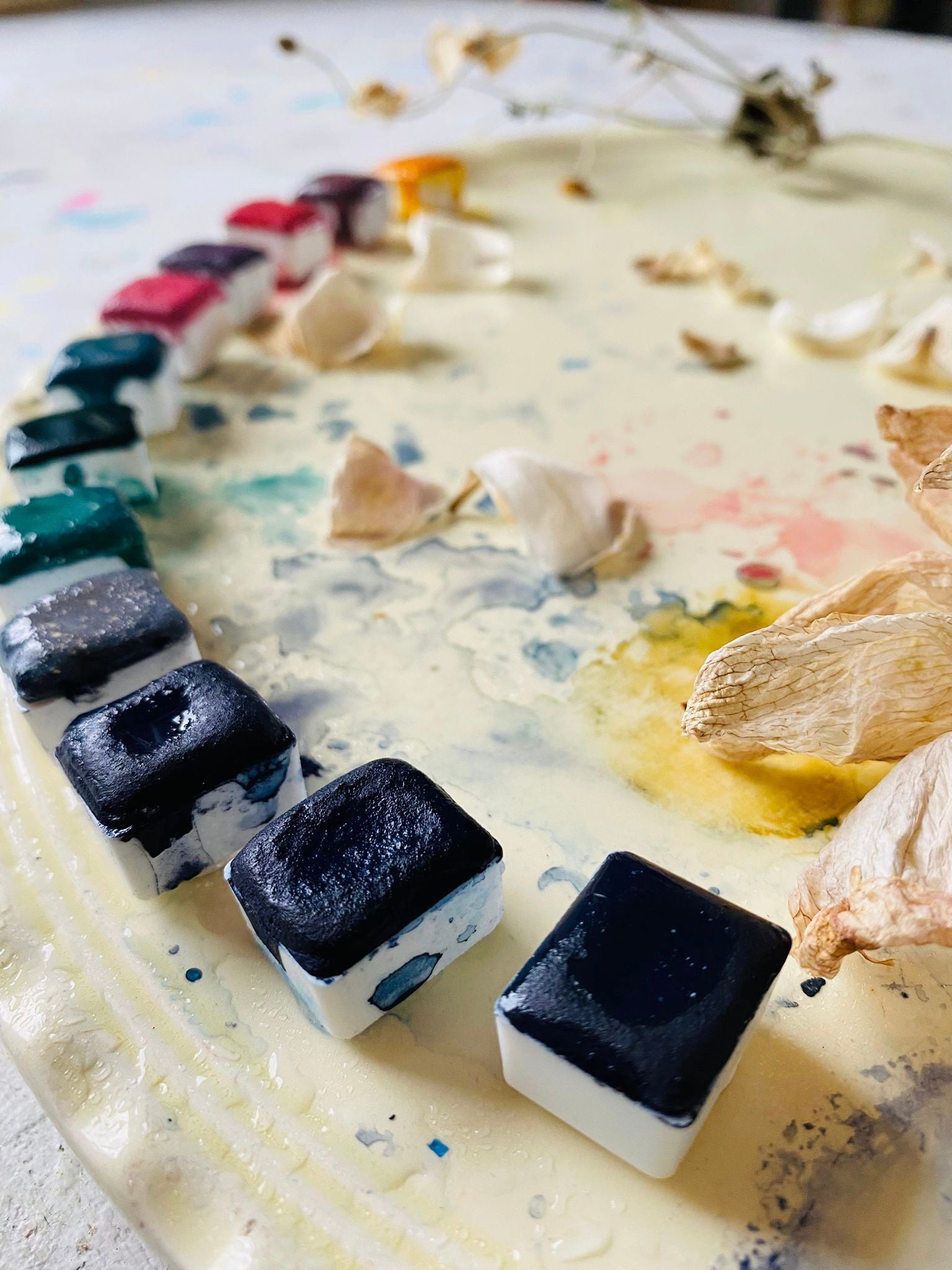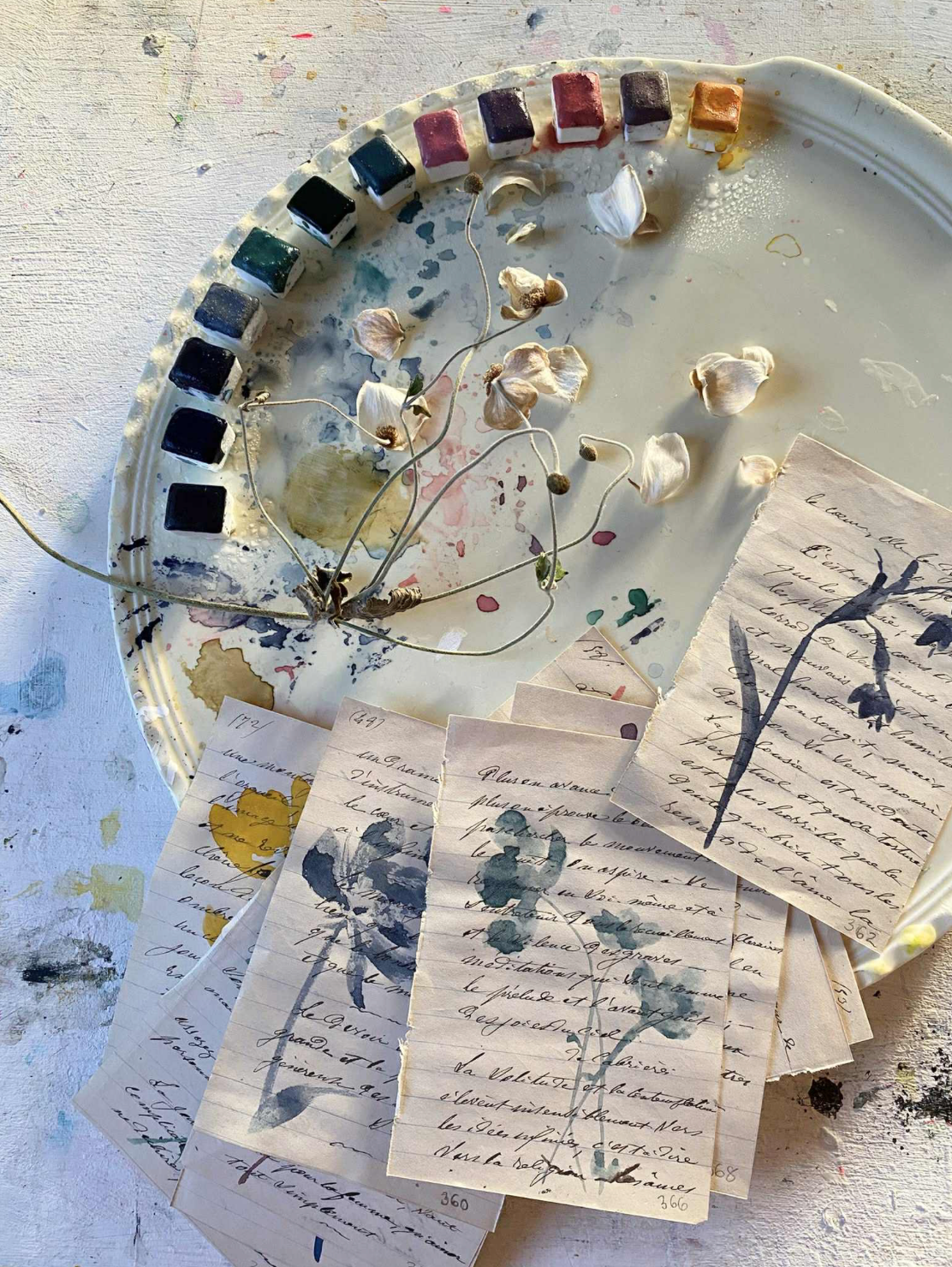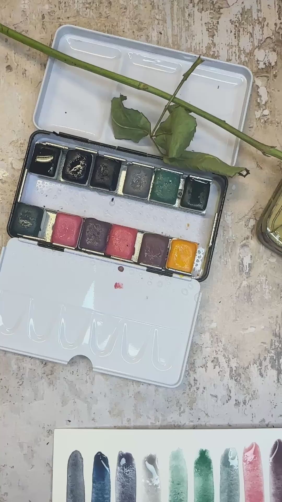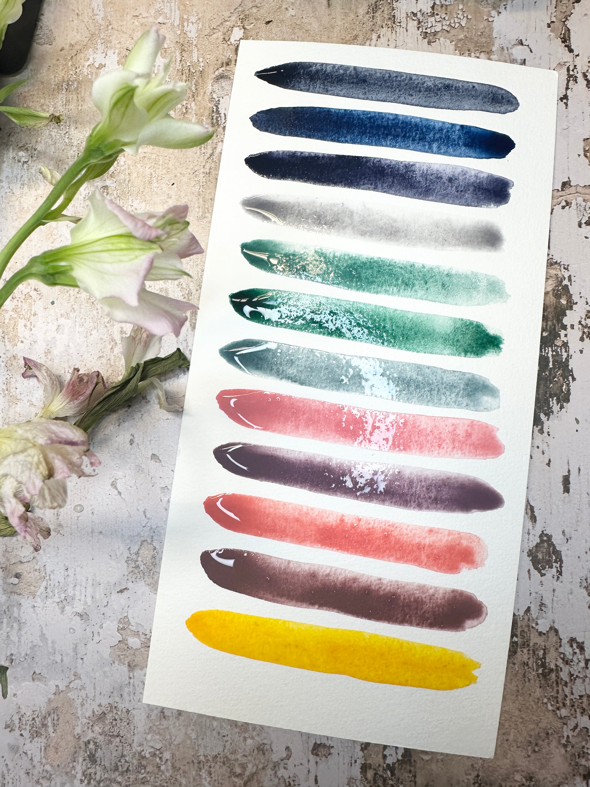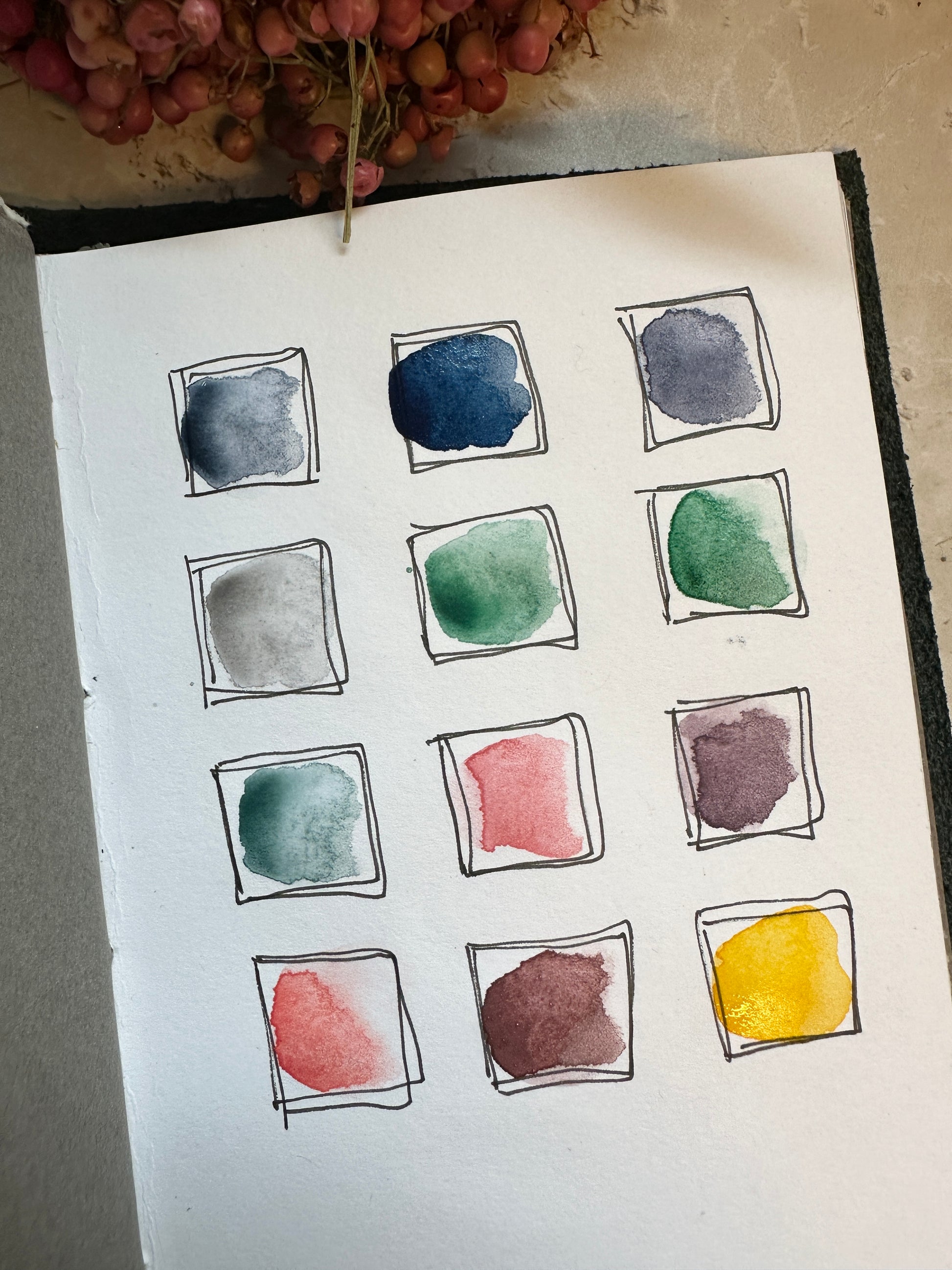 Each color is handmade from raw pigment, without toxins or unnecessary additives. They are complex, a bit unpredictable, and grounded in the material itself. They shift and separate depending on water, paper, and mood, which might explain why they feel familiar so quickly.