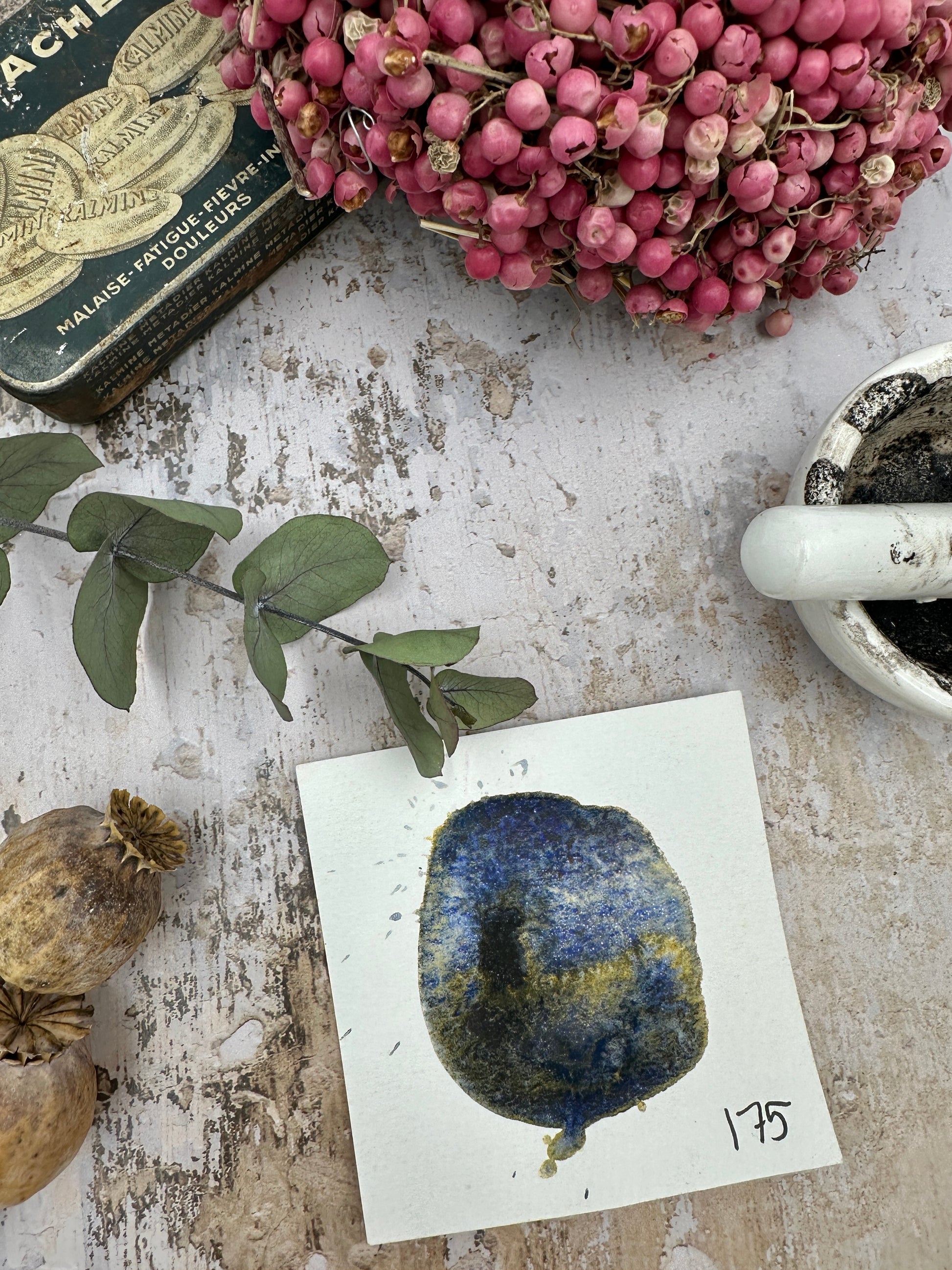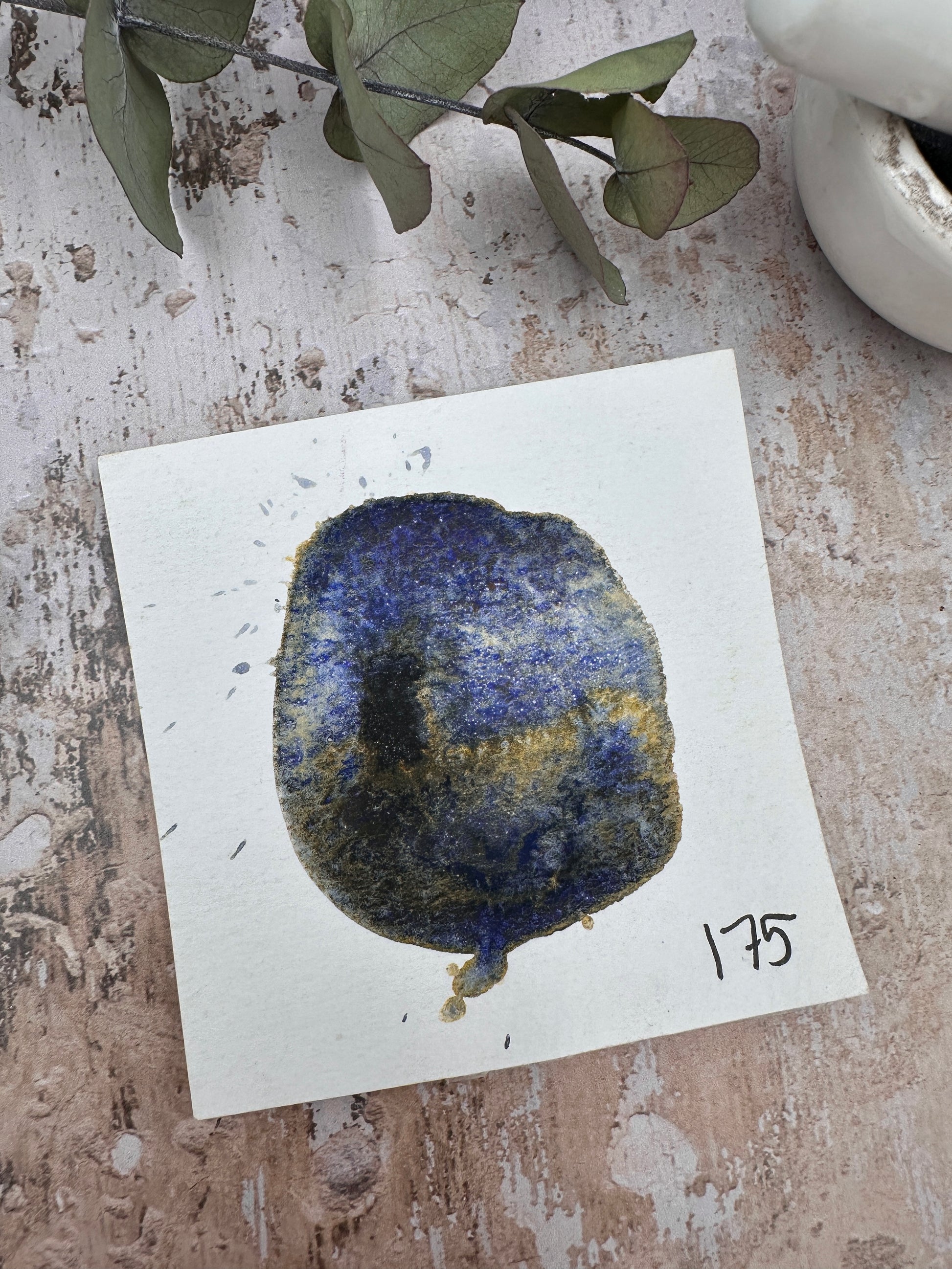 A soft, granulating blue with golden undertones, like cool air outside and warm light inside. It has that “blanket on the sofa” mood. The wash shifts between cool and warm, and the granulation gives it a weathered, stony texture that makes backgrounds look instantly interesting, even if you did absolutely nothing special.